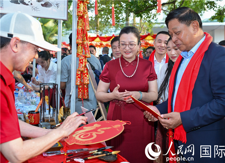 缅甸副总理兼政府总理办公室部长丁昂山在“欢乐春节嘉年华”活动现场体验中国春节民俗。人民网记者 谢佳君摄