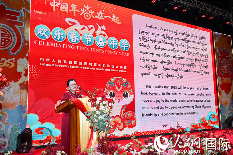 人民网仰光1月24日电 (记者谢佳君)1月23日,中国驻缅甸大使馆在仰光举办2025年“欢乐春节嘉年华”活动,中国驻缅甸大使马珈、缅甸副总理兼政府总理办公室部长丁昂山等多位缅政府高层、多国驻缅使节、在缅华侨华人、中资机构、留学生、缅各界友人等1000余人欢聚一堂,共庆新春。